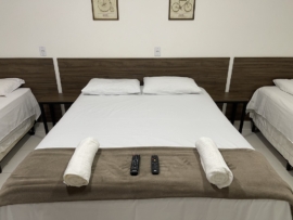 Equipados com ar condicionado, TV e frigobar, cama de casal queen e solteiro box, banheiro grande, com mármore, box de vidro, varanda coberta. Confortável e aconchegante. Servimos um delicioso café da manhã no estilo self-service disponível em nosso salão no restaurante.